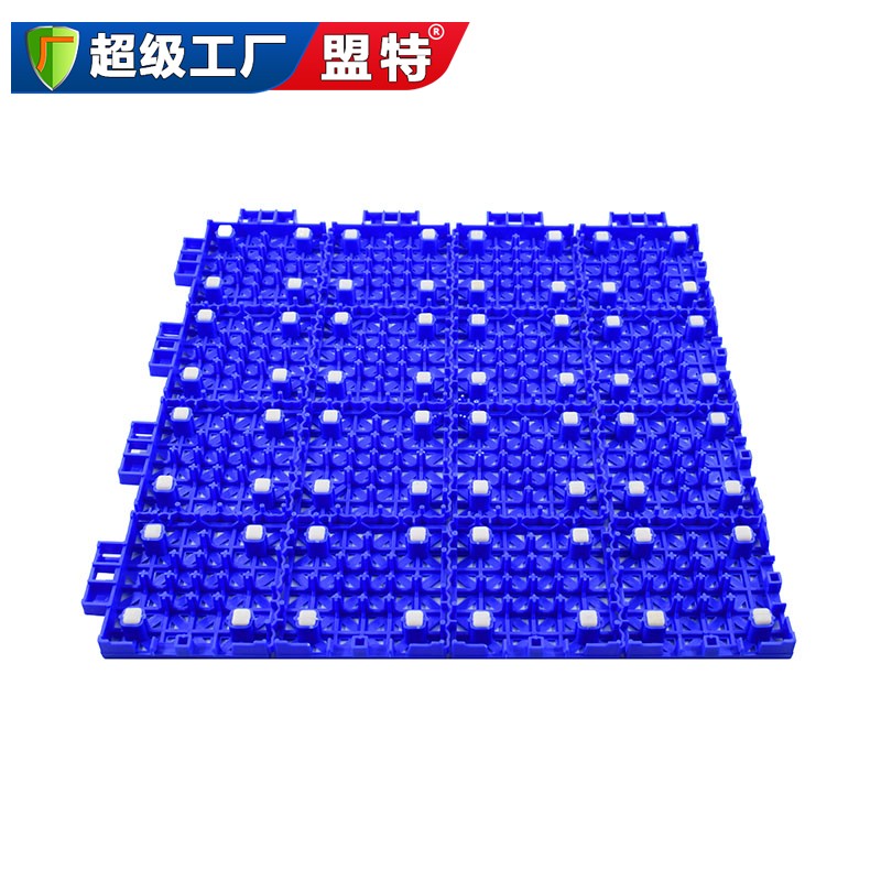 由16小块地板,采用波纹软连接,采用全新改性聚丙烯分子材料,具有环保、安全、舒适等新特性。