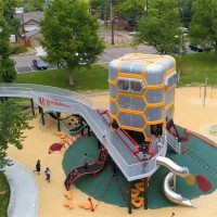 大型户外火箭组合式滑梯可以吸引不同年龄段的孩子们一起游玩,促进他们之间的互动和交流。同时,滑梯也为父母和孩子提供了共同的娱乐场所,增进亲子关系。