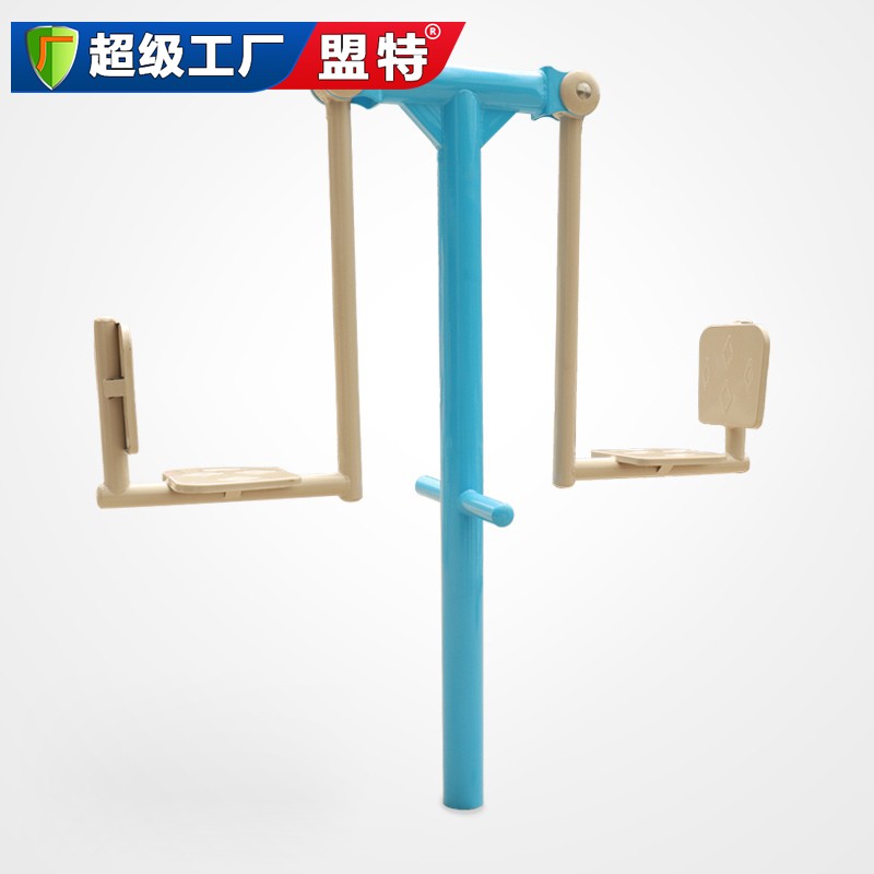 1. 材质:双位坐蹬器主要采用高强度、防腐耐用的钢材结构,表面经过防锈处理和耐候涂层,以保证其长期在户外环境下的使用。